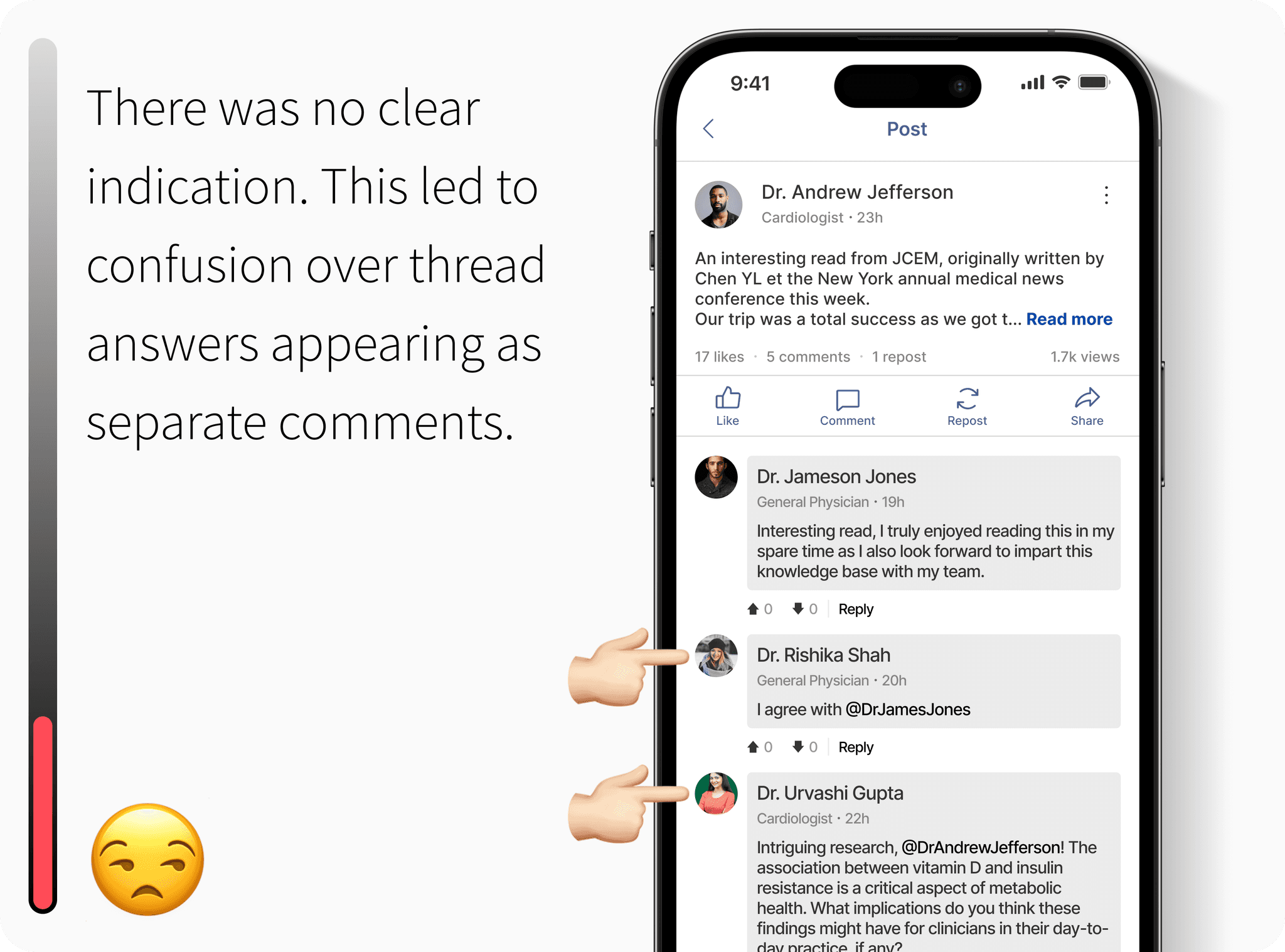 Z is unable to properly connect with other Doctors in the post section as the comments reply feature has been very confusing to use.