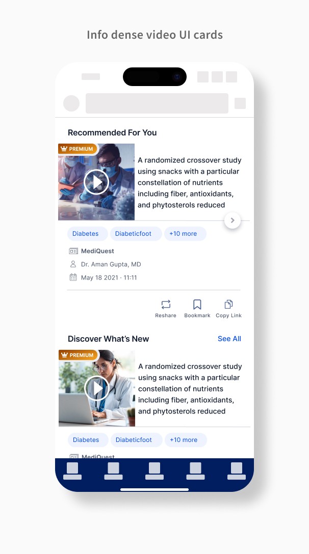 To align design decisions with Mednexus’ long-term vision, I conducted a conversation with the CEO to understand the business goals, product challenges, and design priorities. The discussion revealed insights on user onboarding friction, the growing role of AI in content creation, and the need for a more intuitive global search.