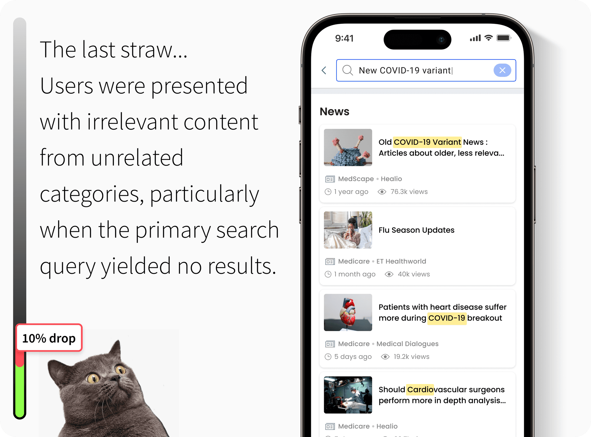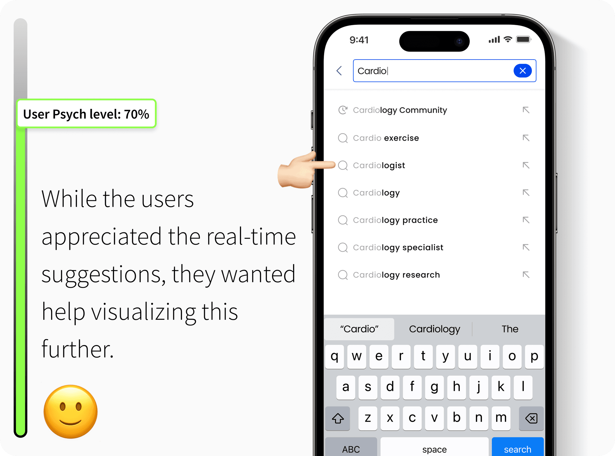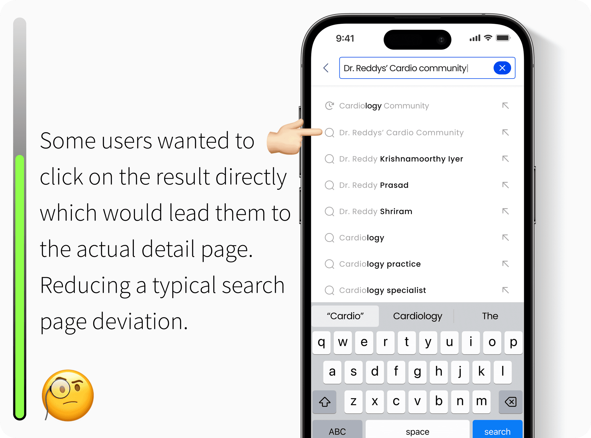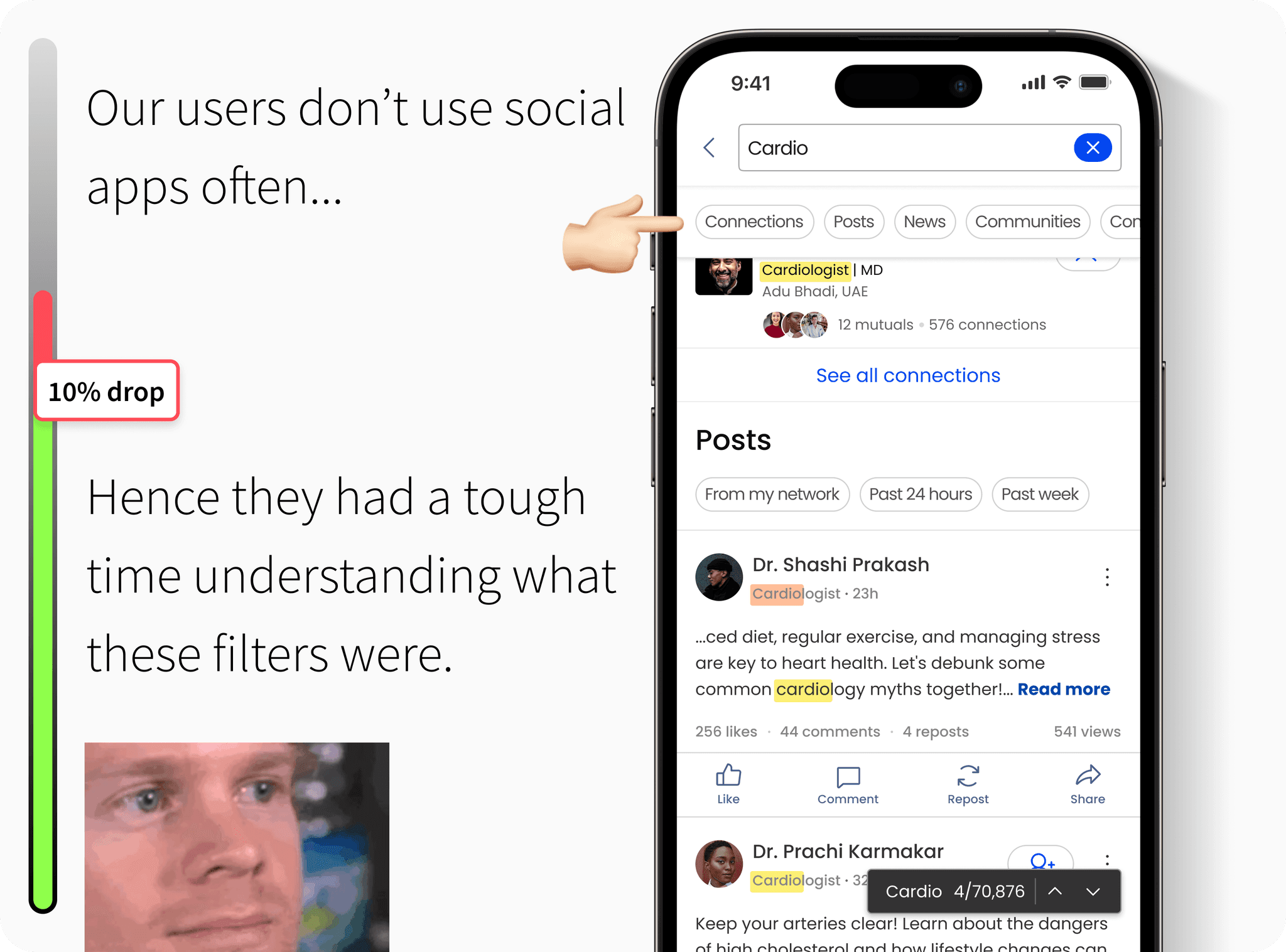 Doctors wanted more granular search filters, like specialty, location, and publication date, along with intelligent suggestions based on past queries.