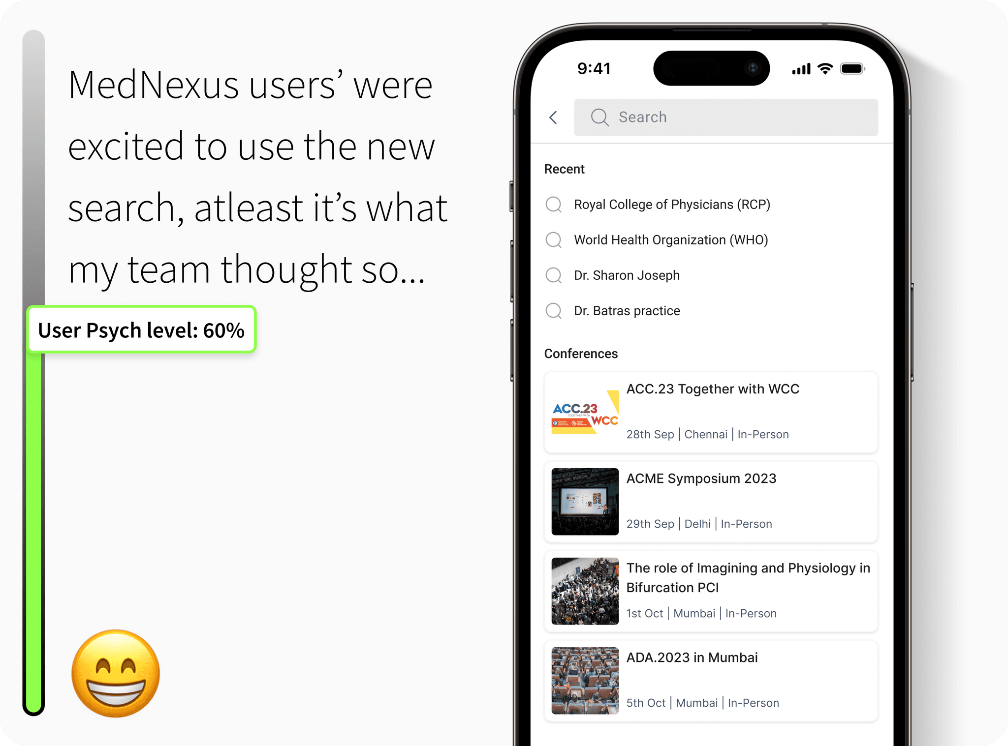 Conducted real-world usability testing at the MedNexus conference, gathering direct feedback from healthcare professionals.
