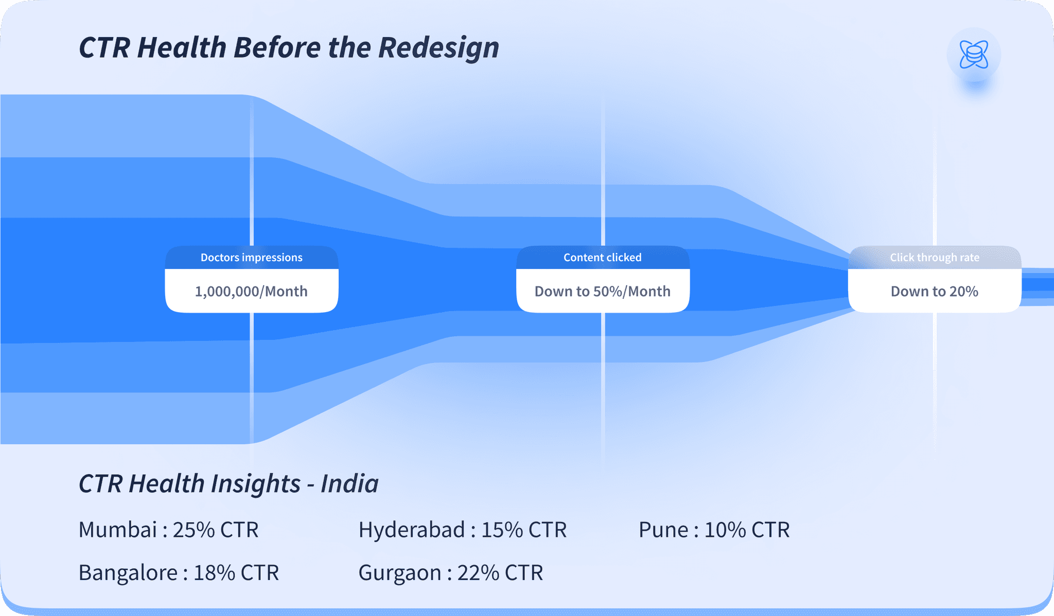 Before the redesign, it was important to measure the percentage of doctors who clicked on the content compared to those who just saw it. This was the only proxy we had to evaluate CTR quality.